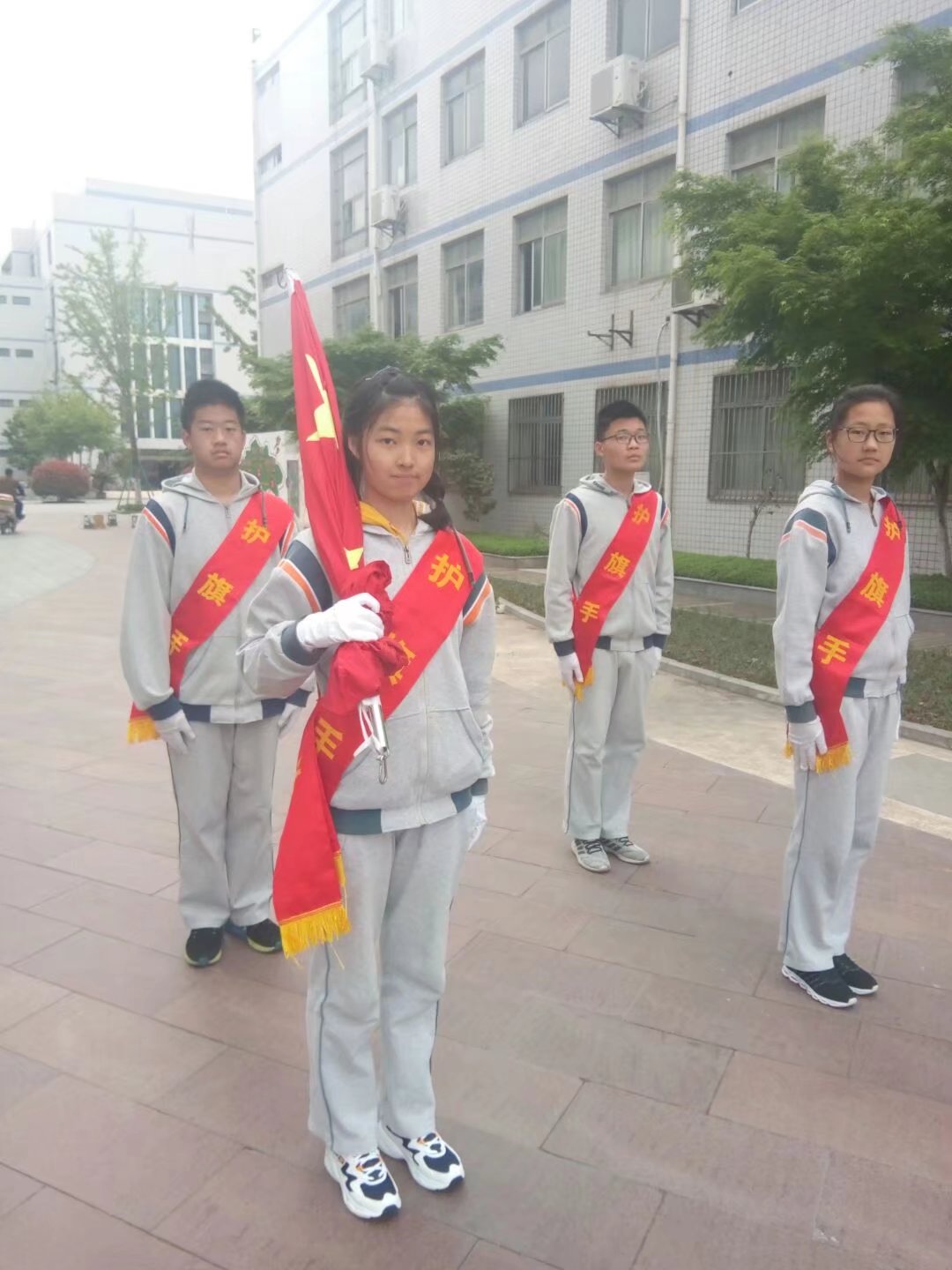 担任此次升旗的是护旗手:贾志轩、夏天航、陈倩、金阳阳。