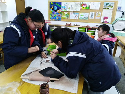 新学期第二周,我们的陶艺社团又开始了,本课同学们学习了陶艺基本成型方法——泥条盘筑法,来进行了泥条盘筑笔筒的制作,在张祖峰老师的示范讲解下,同学们很快就掌握了制作的方法,并开始动手制作,瞧,他们的作品还行吗?此次课劳技组的潘群老师也加入了指导,陶艺社团又壮大了!
