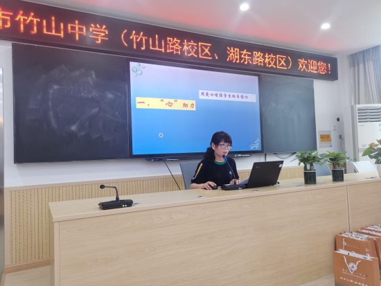 紫东江宁学校的周爱玲老师,以《用xin助力中考》为题,讲座别出心裁地从“心”“新”“辛”和“欣”的角度分享了自己在中考冲刺阶段,如何根据学情,加强学生的学习兴趣,提升学习信心和增强学习能力。讲座最后周老师还送上了温暖的祝愿,祝参会老师们能从“新”开始,“薪”火相传,争创佳绩。